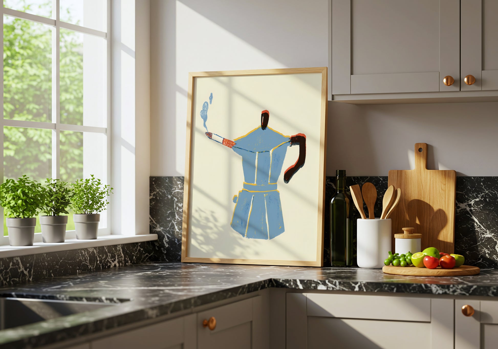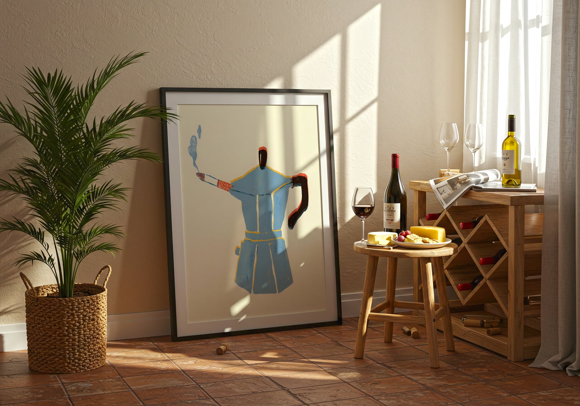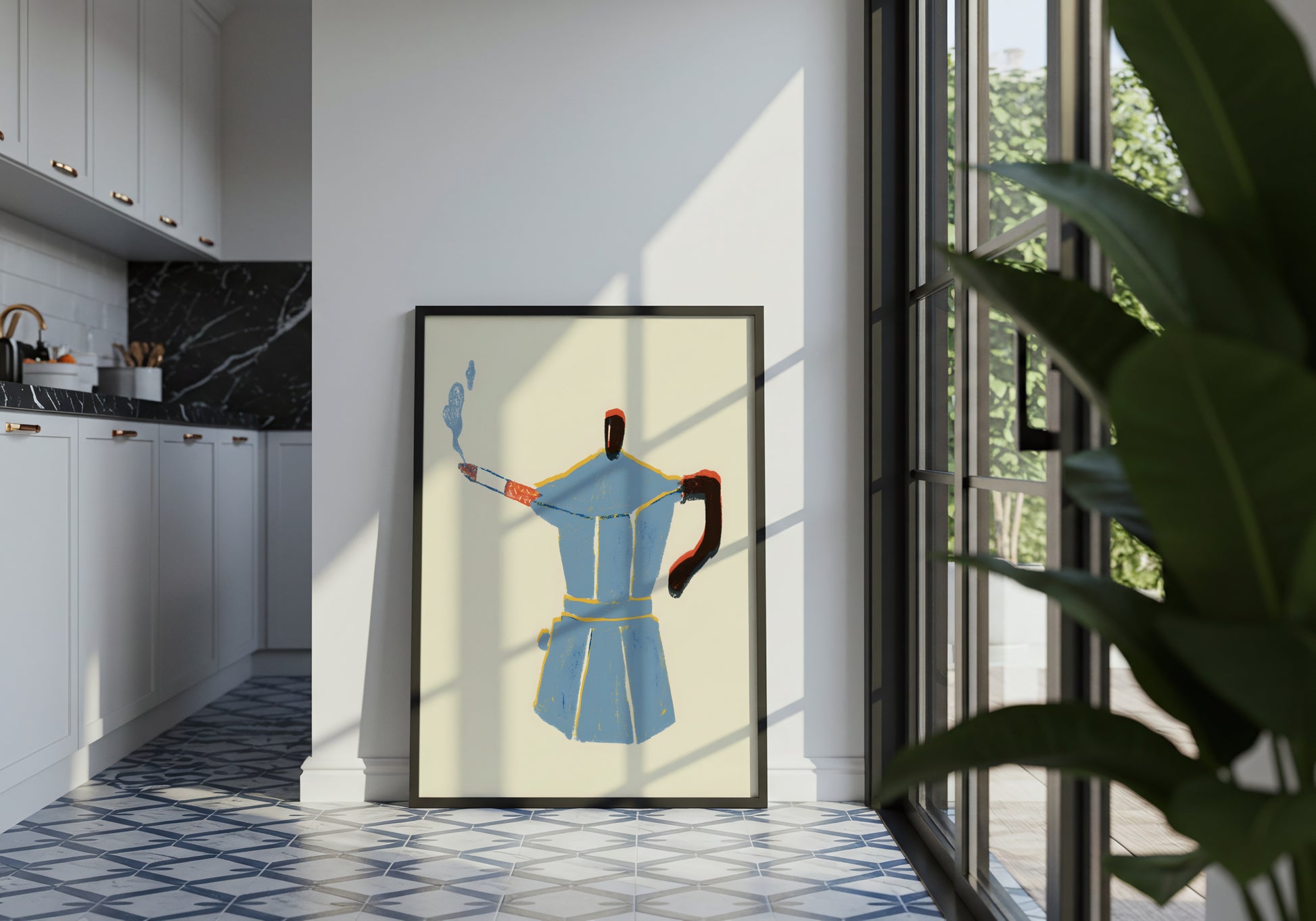 Un poster ideale per cucine, salotti e angoli caffè che vogliono dichiarare una cosa sola: qui si prende tutto con leggerezza… soprattutto la prima tazza.