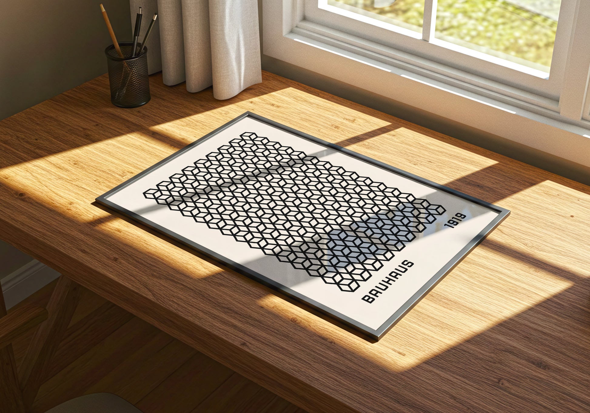 Poster ispirato al design Bauhaus, caratterizzato da un motivo geometrico modulare in bianco e nero che evoca ordine e armonia. L’estetica essenziale e strutturata riflette i principi del movimento modernista, perfetta per chi ama le linee pulite e il design d’avanguardia. Ideale per ambienti minimal, architettonici o creativi.