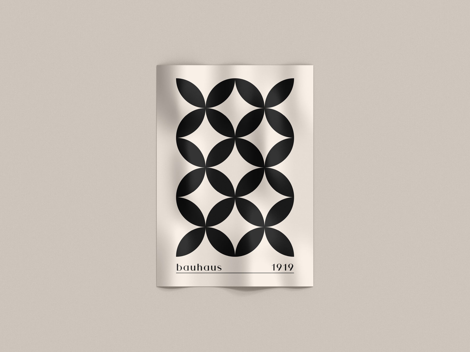 Poster ispirato al movimento Bauhaus, caratterizzato da un motivo geometrico essenziale in bianco e nero. Le forme circolari si intrecciano creando un equilibrio visivo perfetto tra arte e architettura. Un design senza tempo, ideale per arredare con stile moderno e pulito qualsiasi ambiente.