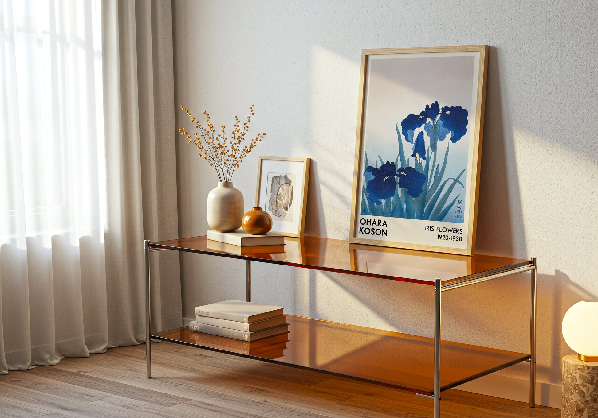 Un’elegante stampa d’arte ispirata alle xilografie giapponesi di Ohara Koson, raffigurante delicati fiori di iris nei toni del blu. Un equilibrio perfetto tra minimalismo e raffinatezza orientale, ideale per chi desidera portare armonia e bellezza naturale nei propri spazi.