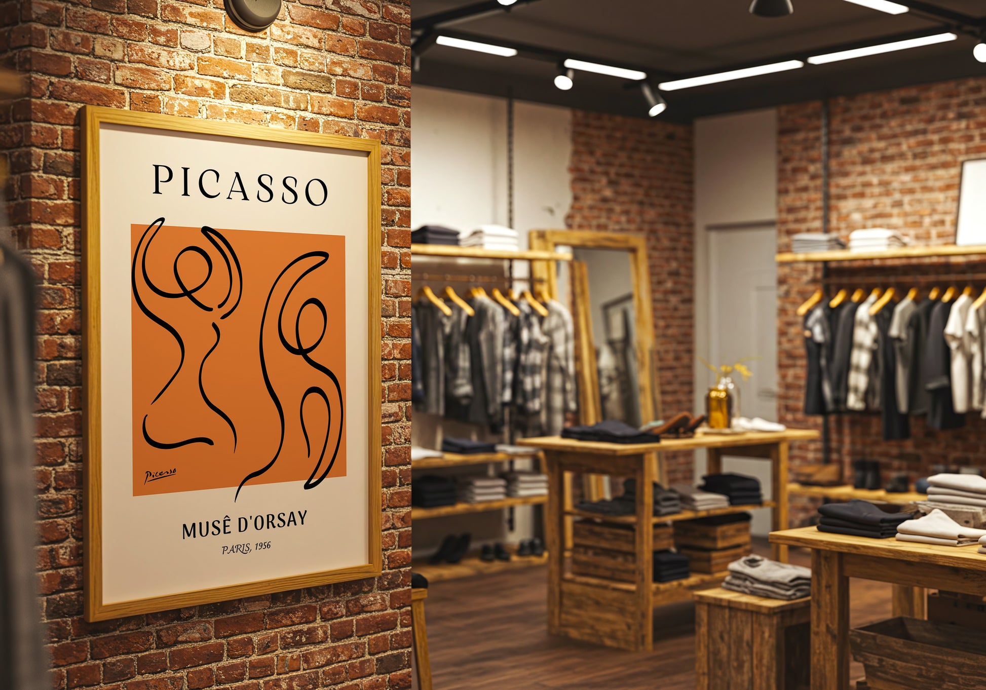 Un tributo elegante alla sensualità e al movimento tipici delle linee di Picasso. Questo poster, ispirato alla mostra del 1956 al Musèe d’Orsay, cattura la libertà del corpo femminile con pochi tratti sinuosi e decisi. Perfetto per ambienti moderni, creativi e pieni di carattere.