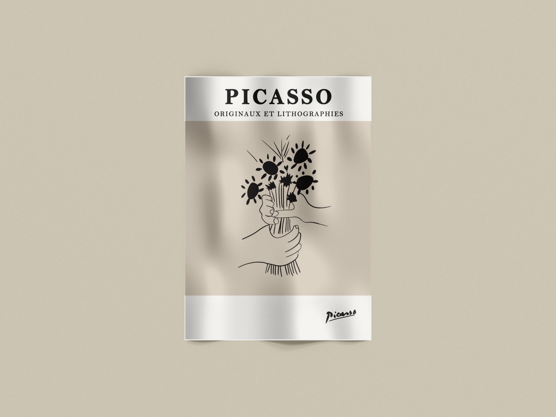 Un classico intramontabile firmato Pablo Picasso. Il poster raffigura due mani che si stringono in un gesto di pace e unione, reggendo un mazzo di fiori stilizzati. Linee semplici ma cariche di significato, simbolo di armonia, amore e speranza.
