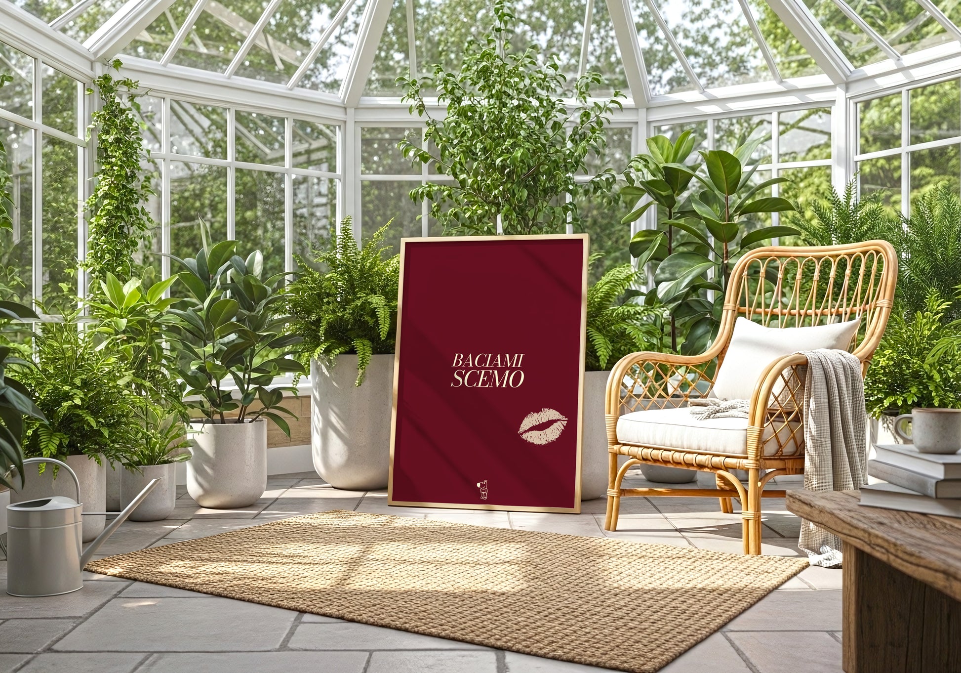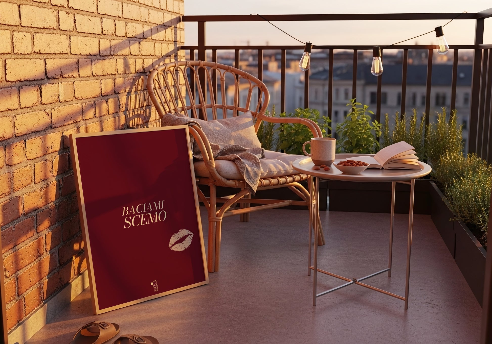 Poster dal design elegante e minimal, con fondo bordeaux e la frase “Baciami scemo” che unisce romanticismo e ironia in perfetto equilibrio. Il dettaglio delle labbra aggiunge un tocco sensuale e giocoso, ideale per camere da letto, spazi moderni o come regalo originale per la persona amata.