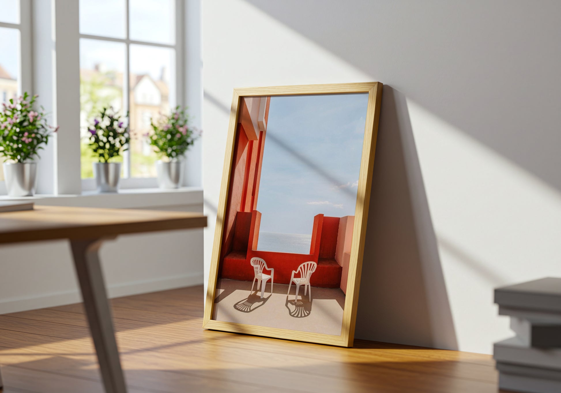 Luce, geometrie e silenzio si fondono in una scena che profuma di estate e architettura mediterranea.
