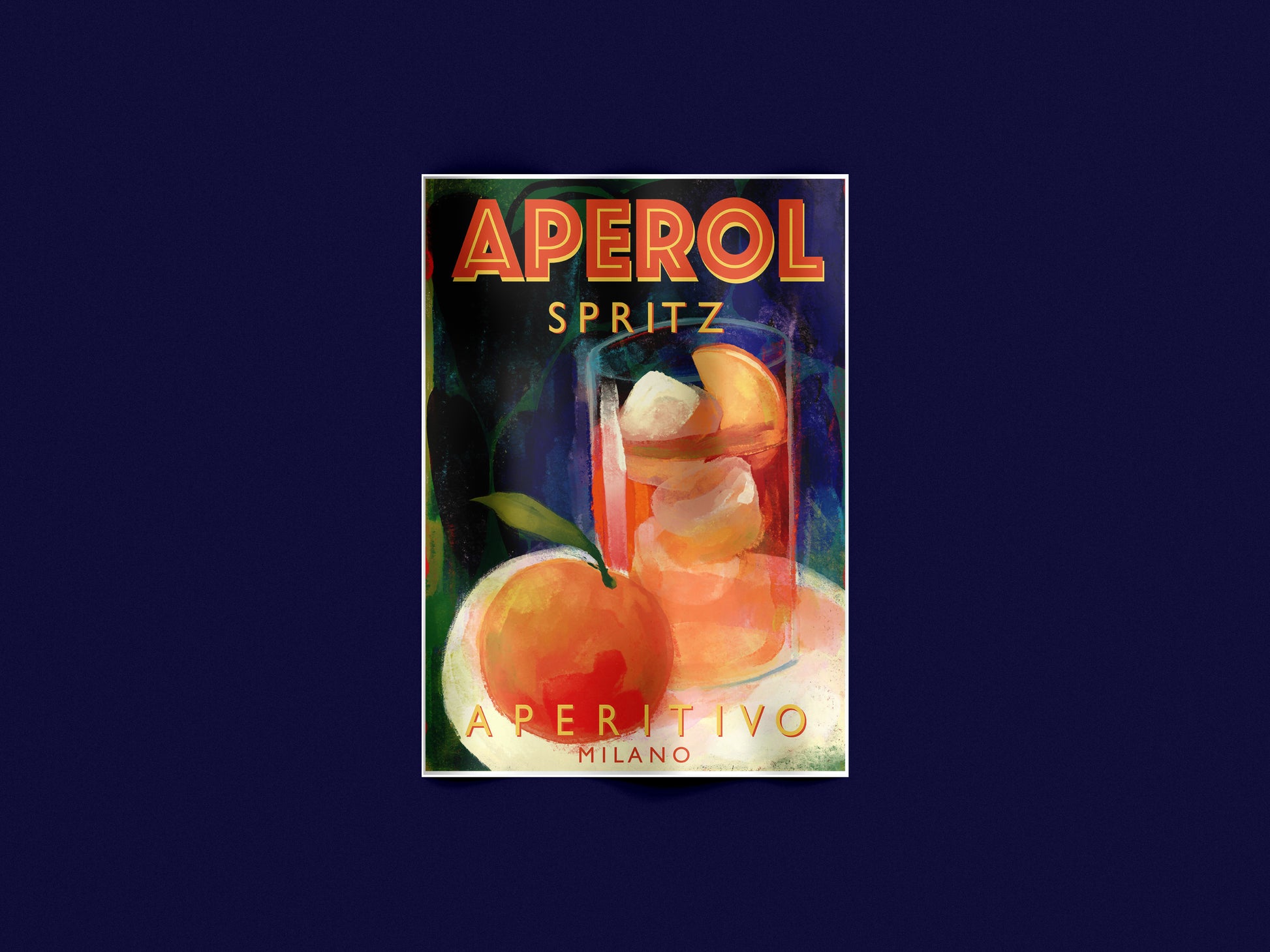 Poster dallo stile vintage che celebra l’iconico Aperol Spritz, simbolo dell’aperitivo italiano per eccellenza.