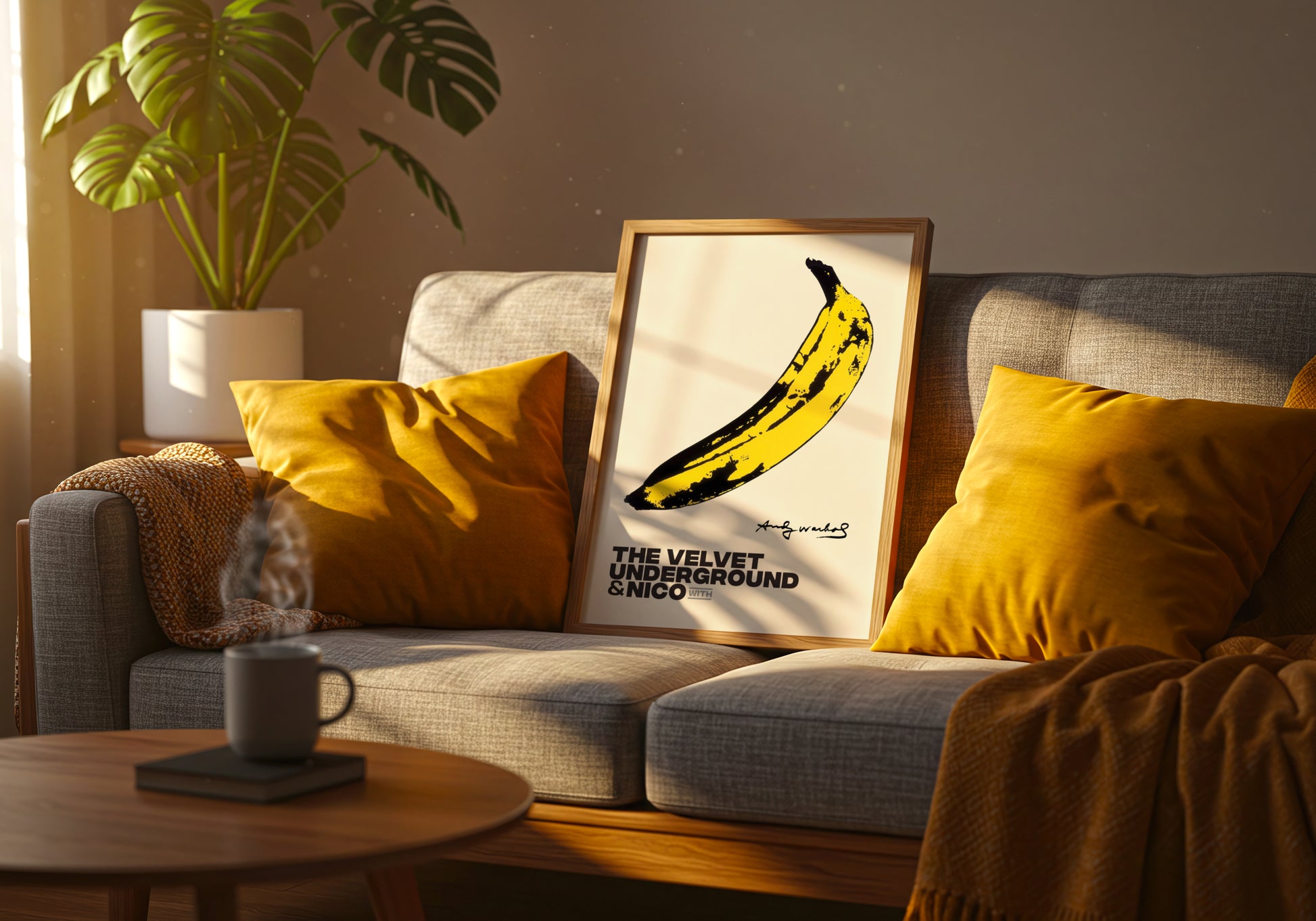 Iconico poster ispirato all’opera di Andy Warhol per la copertina dell’album The Velvet Underground & Nico. La banana gialla su sfondo neutro rappresenta uno dei simboli più riconoscibili della Pop Art, unendo ironia, semplicità e impatto visivo.