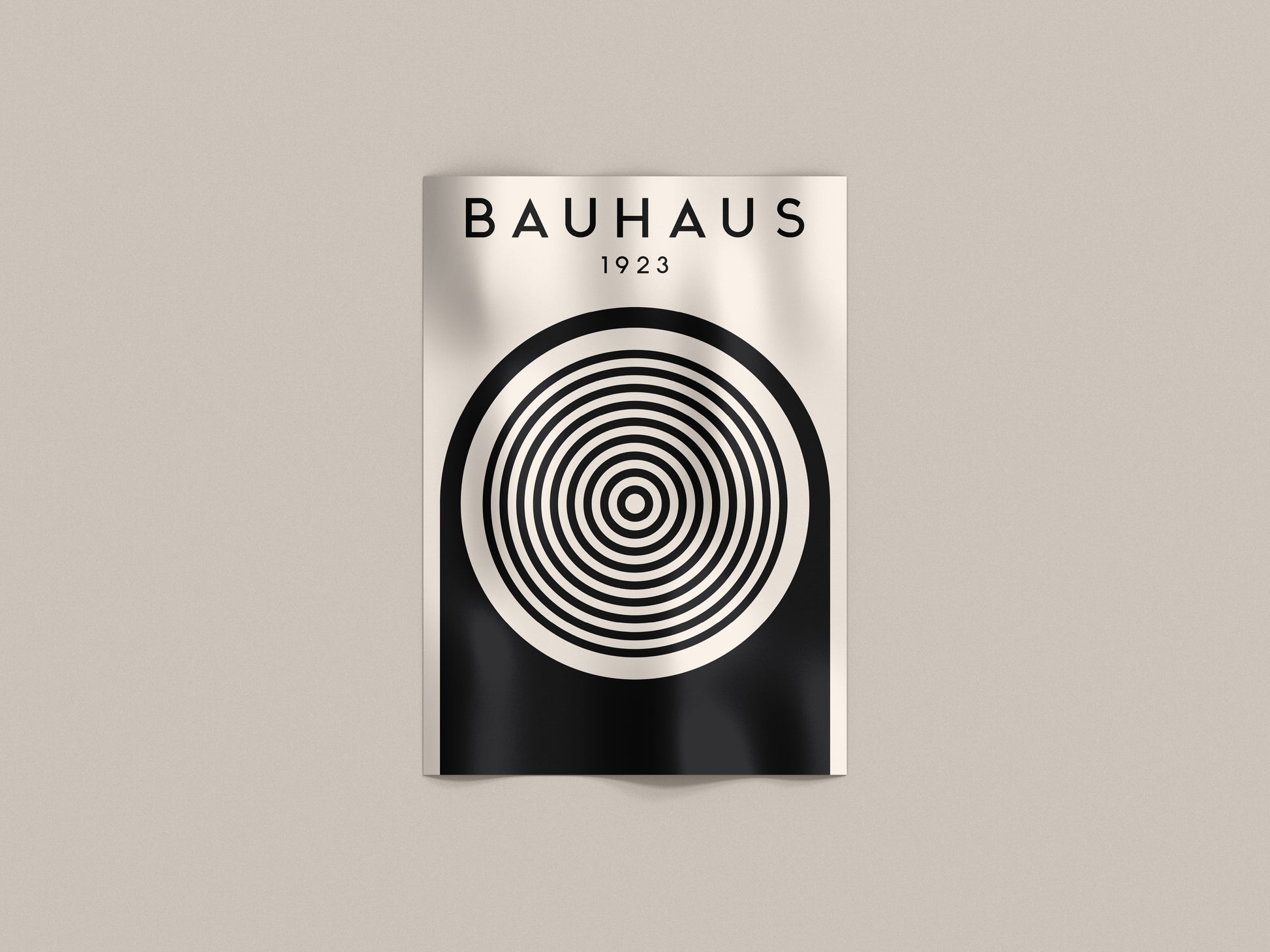 Poster dal design minimalista ispirato al movimento Bauhaus, con un motivo concentrico che richiama equilibrio e precisione geometrica. L’uso del bianco e nero crea un forte impatto visivo, ideale per ambienti moderni, studi creativi o spazi arredati con gusto essenziale. Un omaggio all’estetica funzionale e senza tempo del Bauhaus.