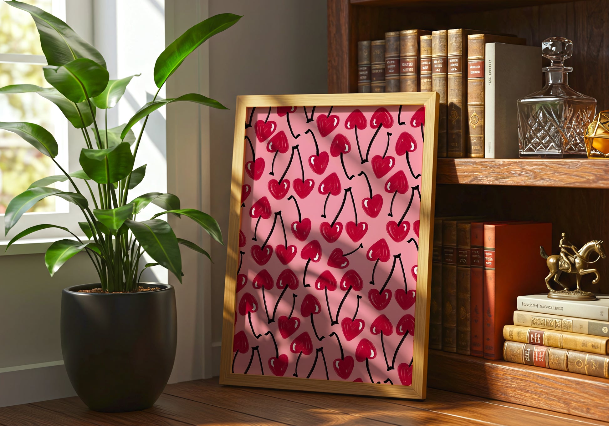 Un’esplosione di cuori-ciliegia che porta subito buonumore! Questo pattern rosa e rosso, giocoso e vivace, è perfetto per dare un tocco pop e romantico a qualsiasi stanza. Un mix dolce e moderno che trasforma ogni parete in una dichiarazione d’amore… con stile.