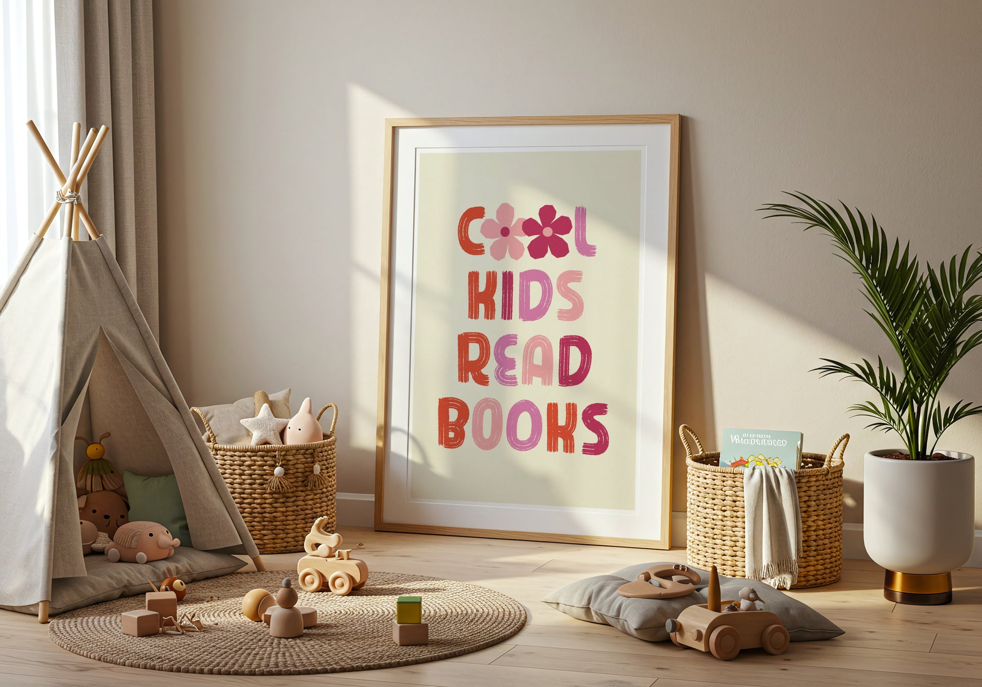 Poster allegro e motivazionale con la frase Cool Kids Read Books, perfetto per incoraggiare la lettura con stile e positività.