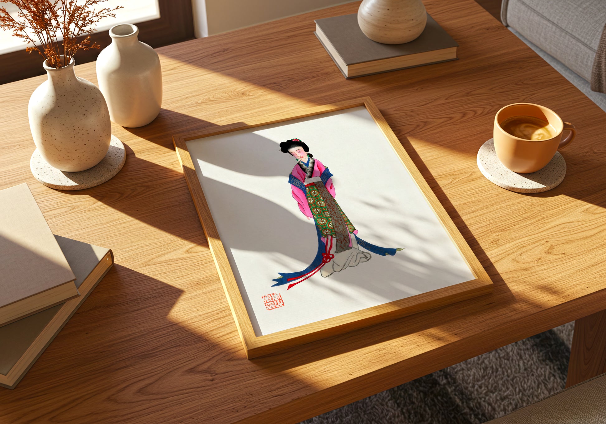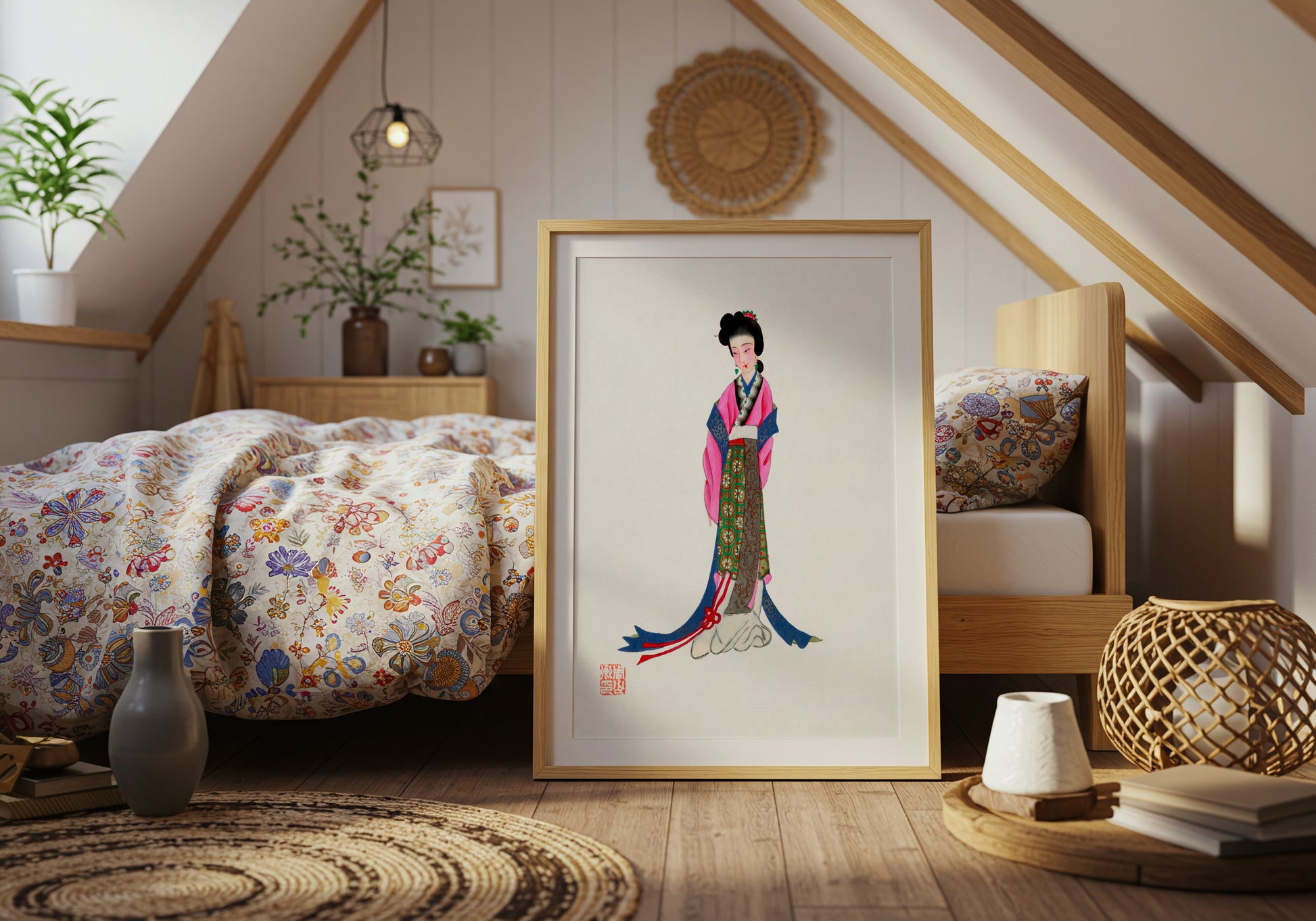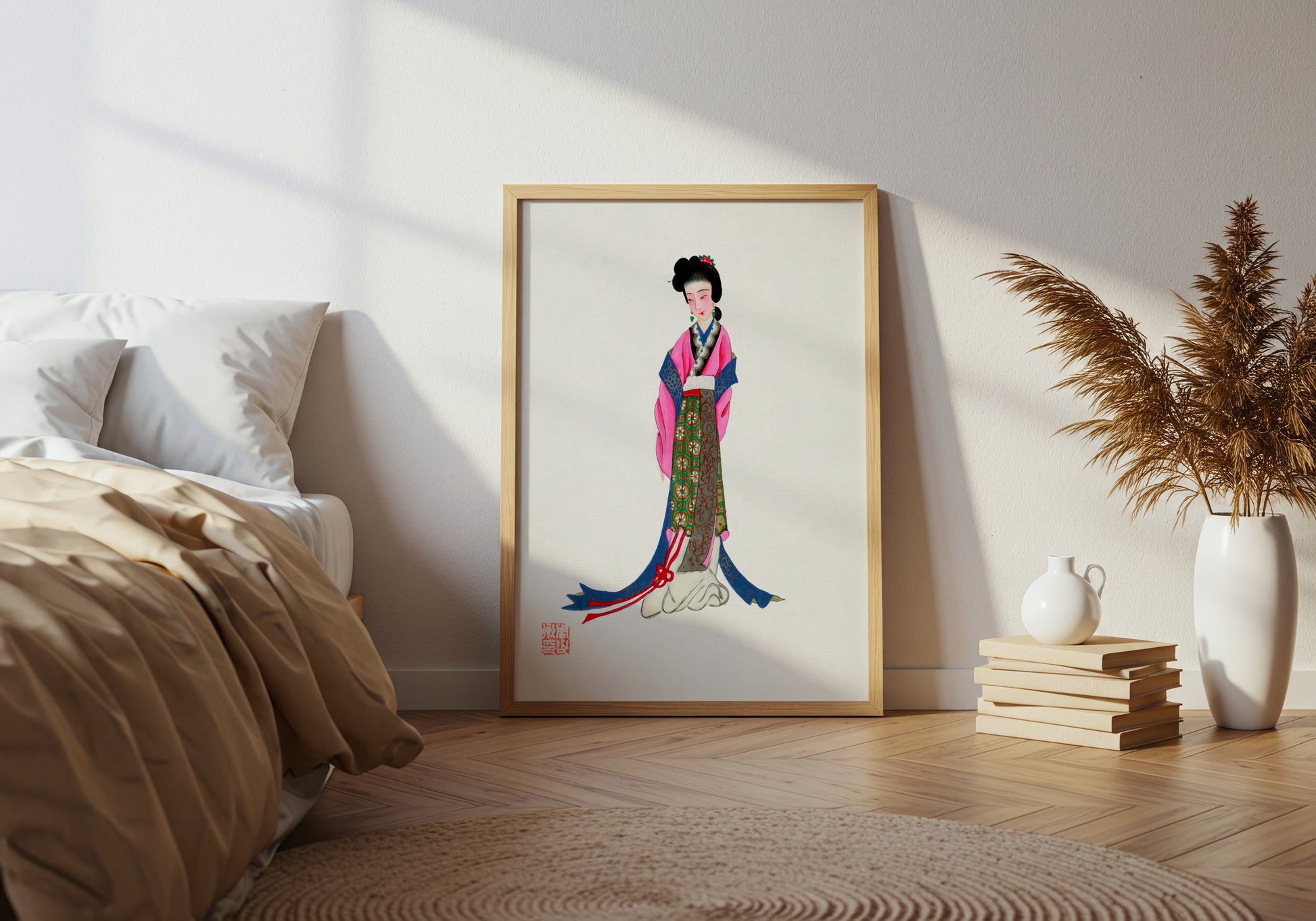 Perfetto per chi ama l’arte orientale, i dettagli artigianali e le atmosfere poetiche: un’opera che porta quiete e bellezza in qualunque ambiente.