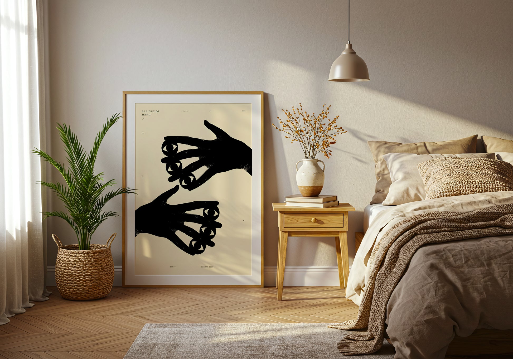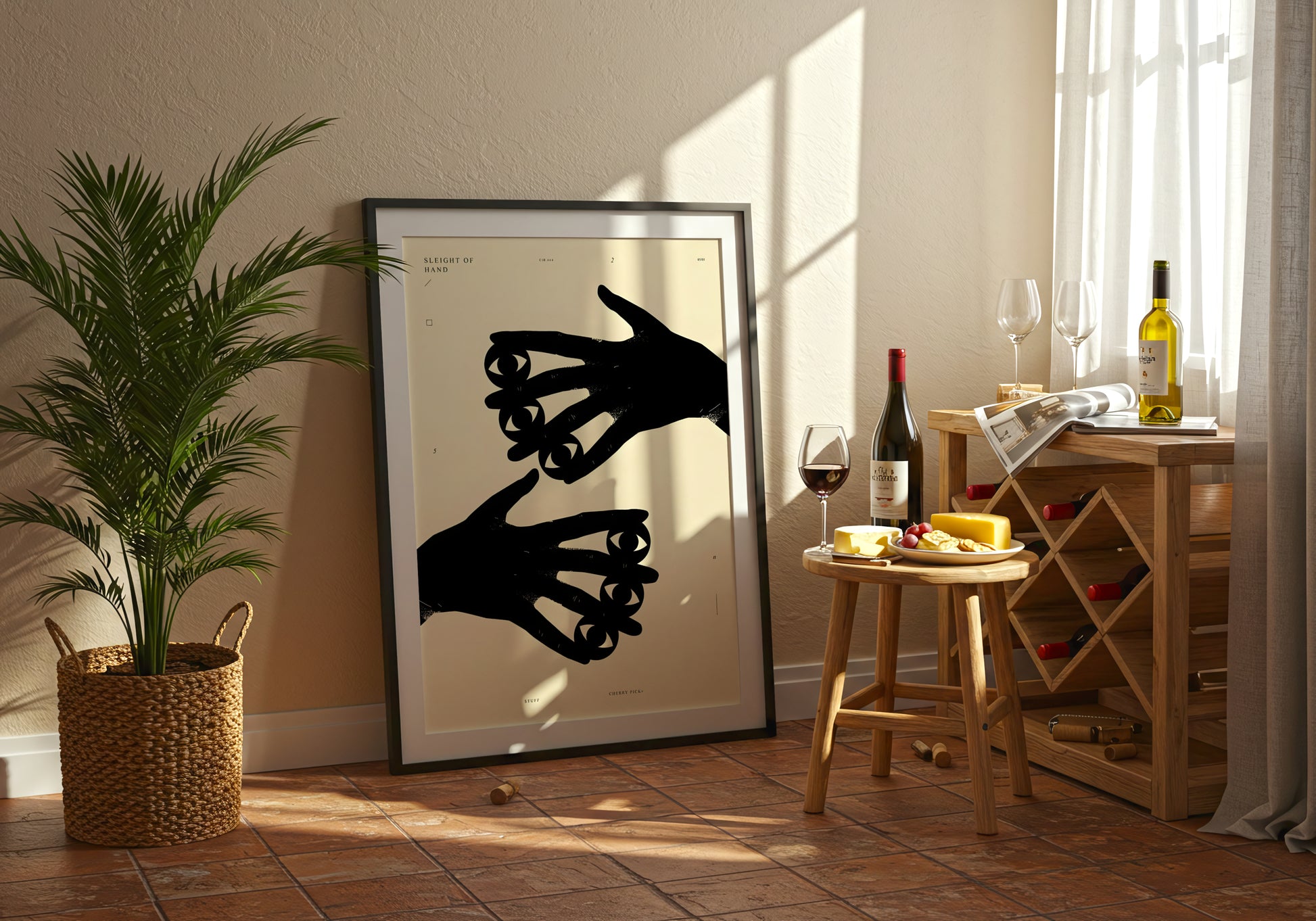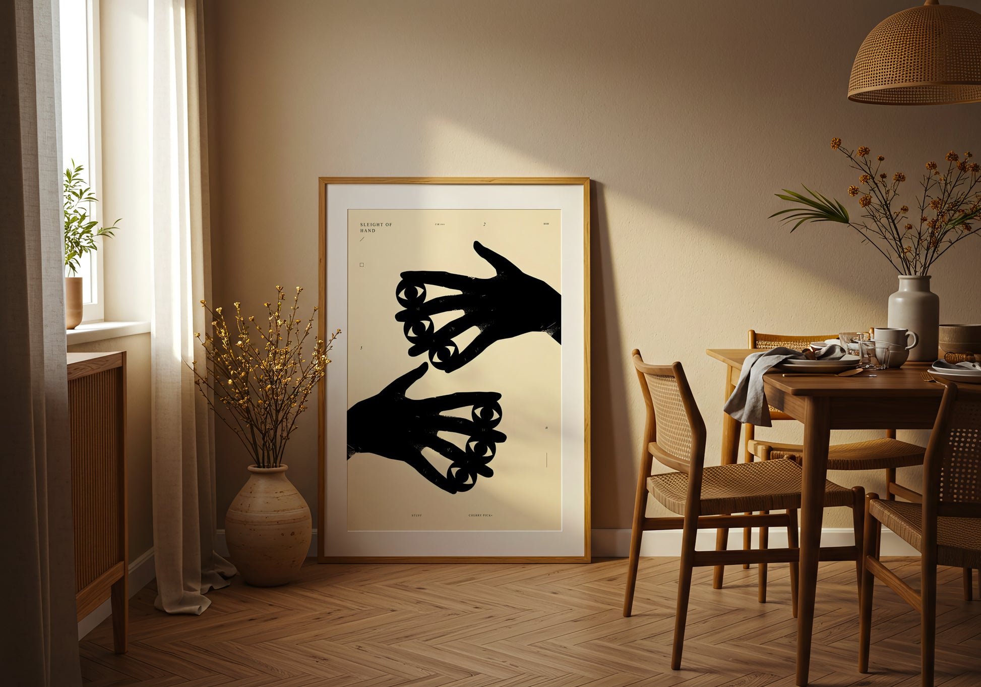 Un poster che cattura l’attenzione grazie ai contrasti netti e alla sua simbologia ambigua, ideale per spazi moderni e creativi.