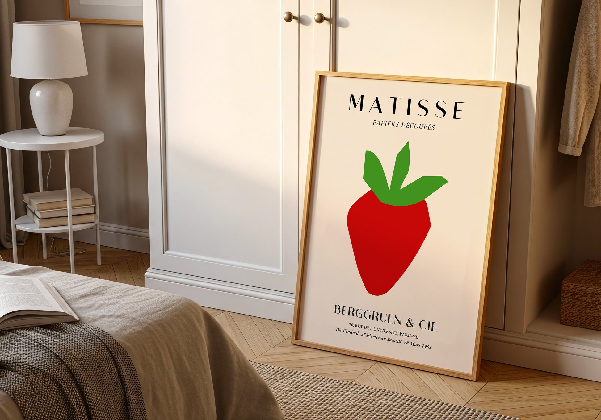 Poster ispirato alle opere di Henri Matisse e alla sua celebre tecnica dei papiers découpés. La composizione semplice e armoniosa, con forme essenziali e colori vivaci, cattura l’eleganza e la leggerezza dell’arte moderna francese. Perfetto per arredare ambienti minimal, creativi o dal gusto artistico.