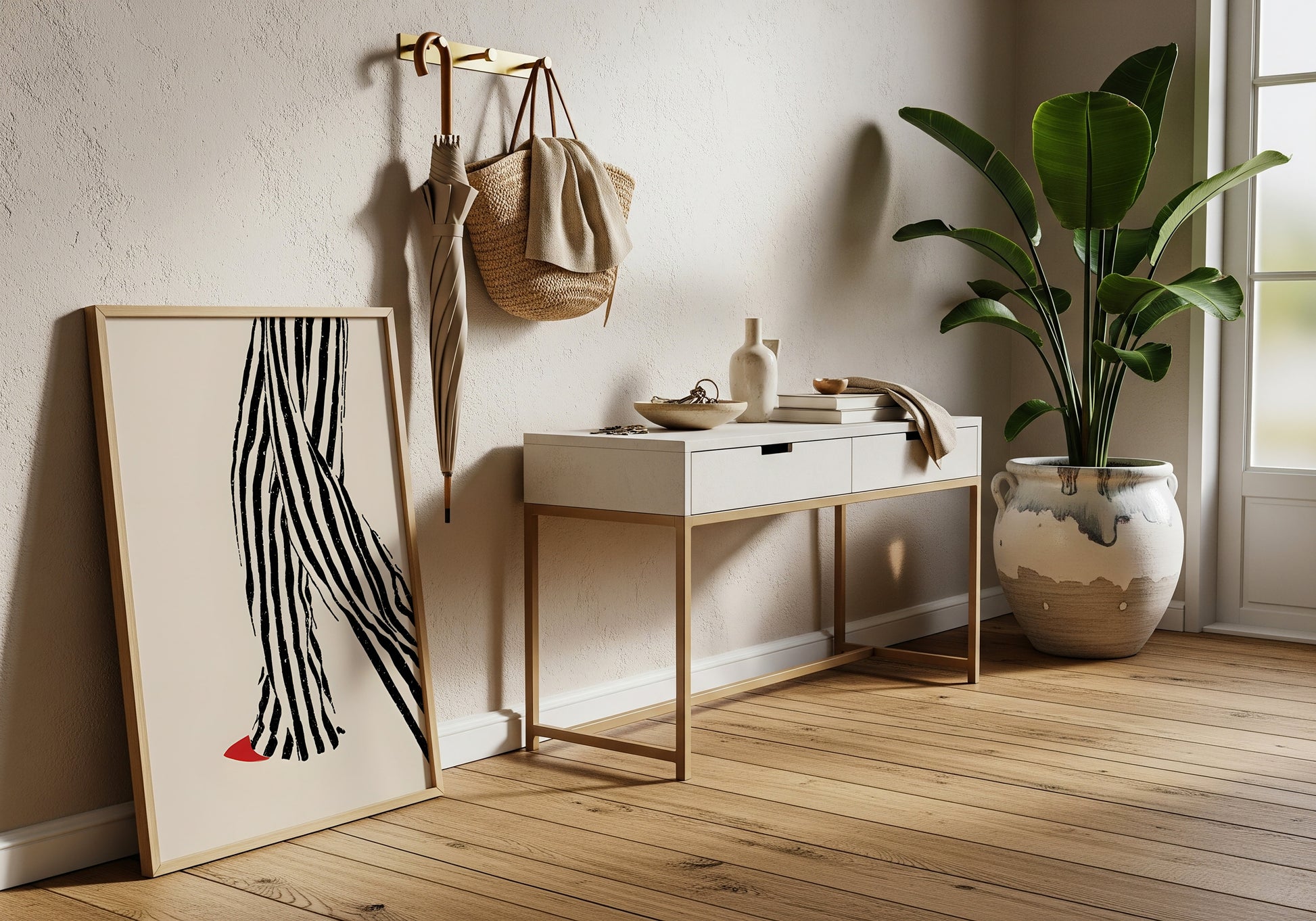 Un poster perfetto per chi ama lo stile minimal, il fashion design e le composizioni grafiche che raccontano personalità con pochi, essenziali gesti.