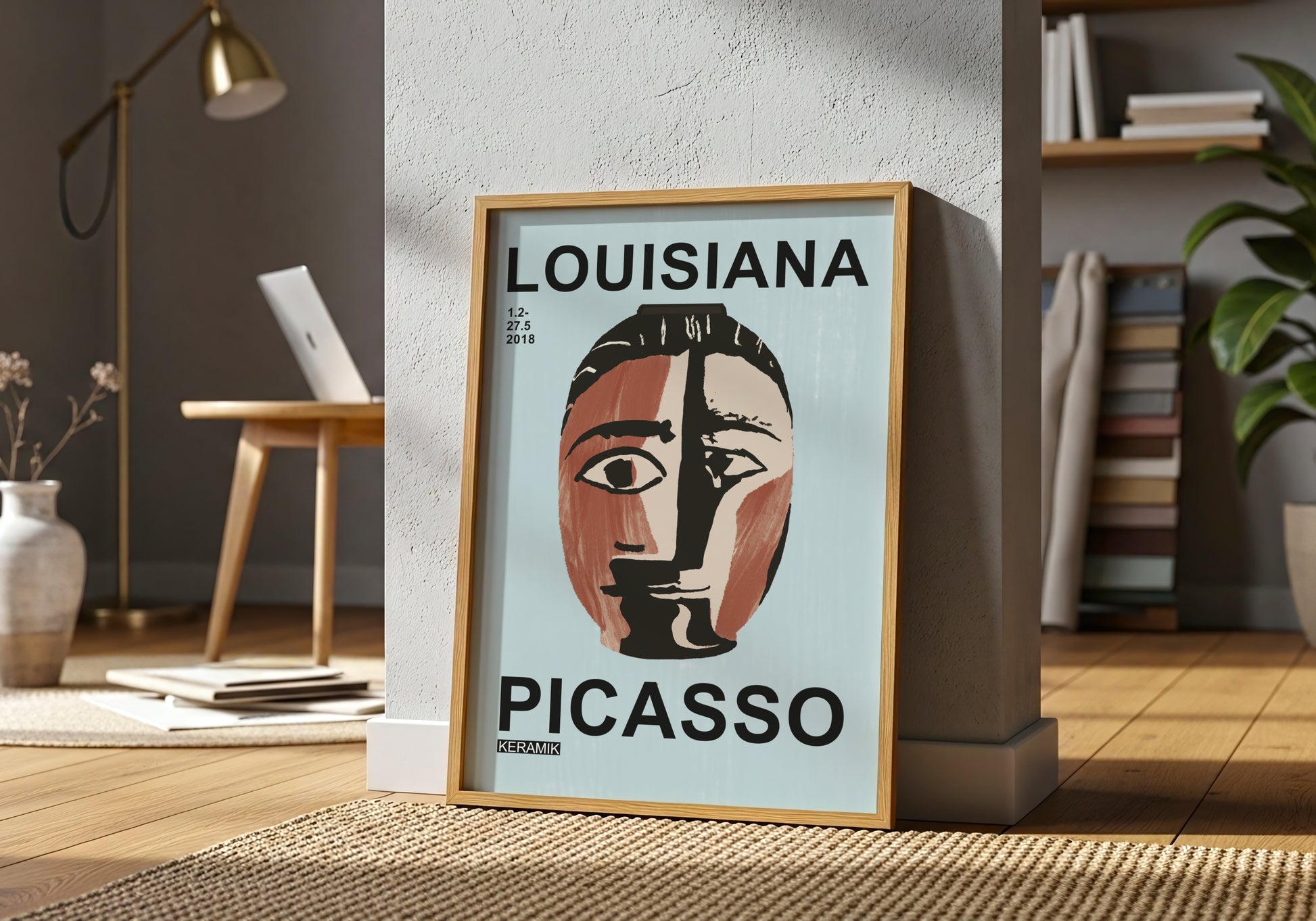 Un omaggio alla mostra dedicata a Pablo Picasso presso il Louisiana Museum of Modern Art. Il design mette in risalto un volto stilizzato, simbolo dell’approccio unico dell’artista alla forma e alla materia, con un richiamo alle sue celebri opere in ceramica.