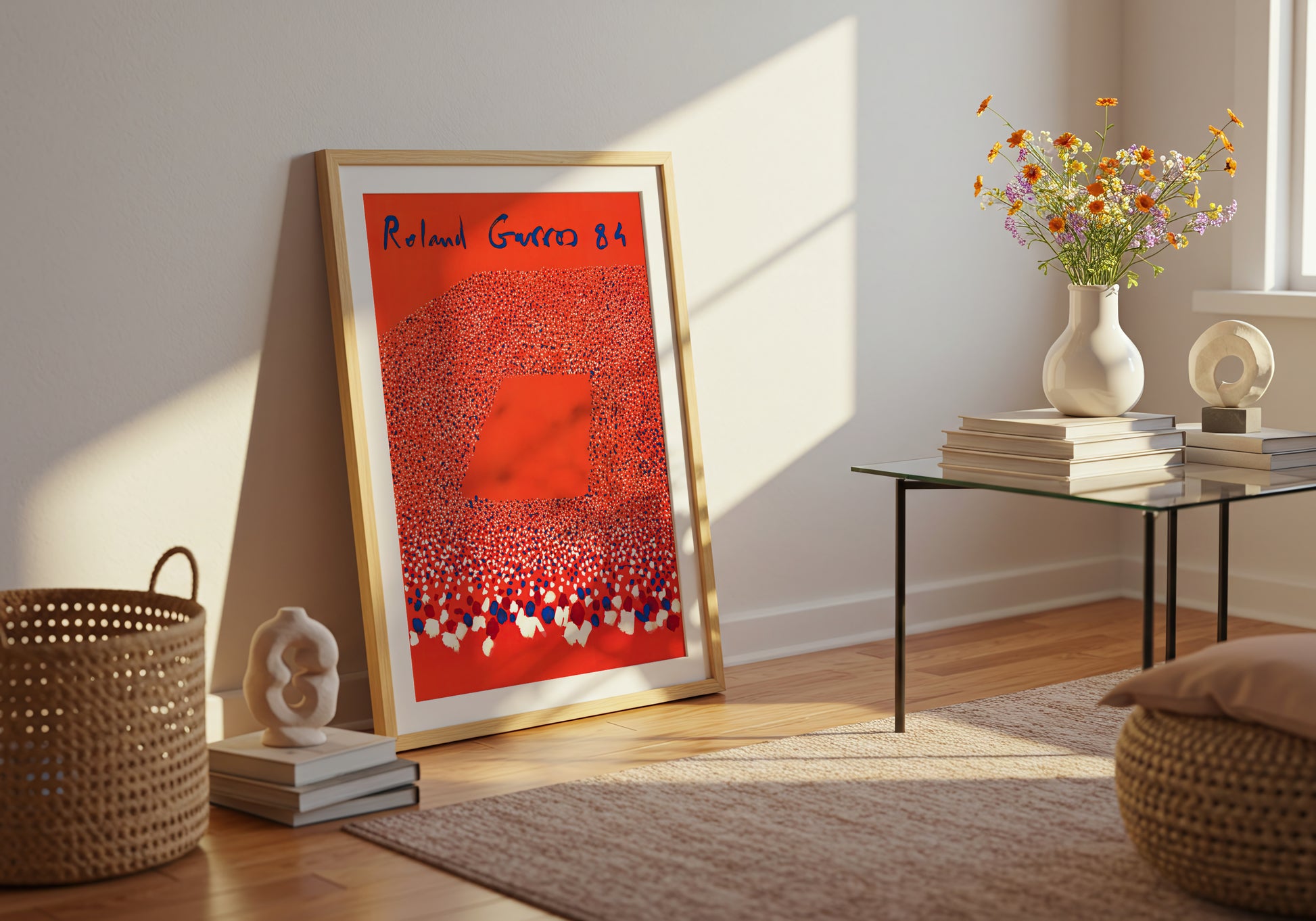 Un’esplosione di colore e movimento che cattura tutta l’energia del leggendario torneo parigino. Il campo rosso si staglia tra una folla vibrante, resa con tocchi pittorici che evocano passione, ritmo e calore estivo.
