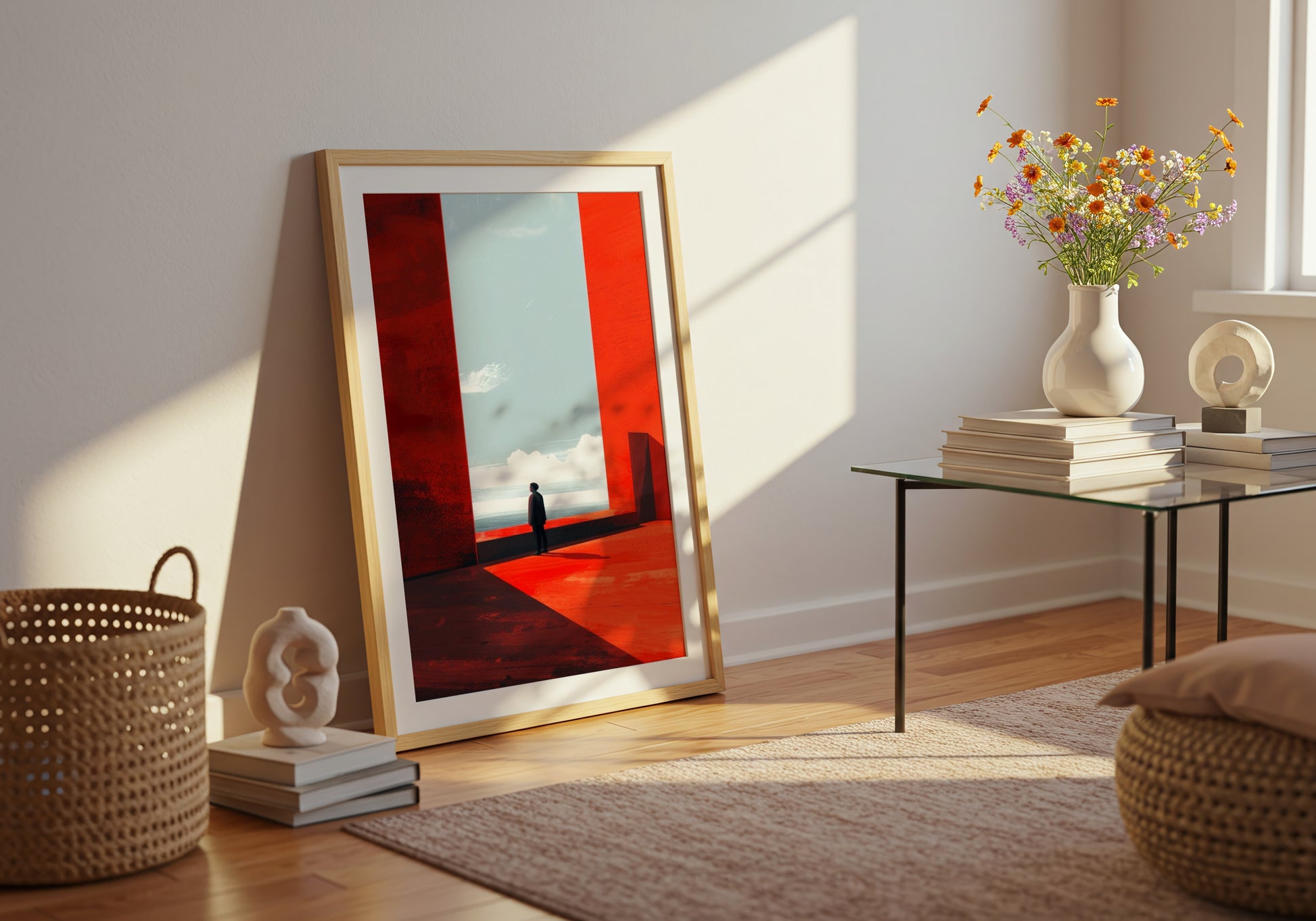 La composizione essenziale e moderna dona alla stampa un’atmosfera contemplativa, ideale per ambienti minimal, creativi o dedicati alla ricerca di calma e profondità visiva.